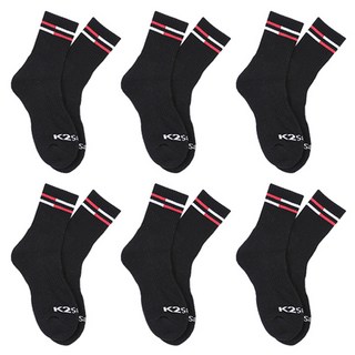 케이투세이프티 남성용 크루삭스 장목 양말, 22 x 17 cm, 블랙, 6개