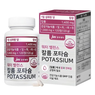 JW중외제약 워터 밸런스 칼륨 포타슘, 120정, 1개