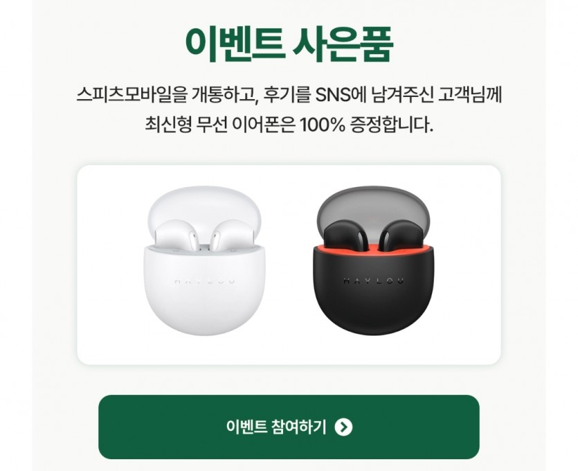 개통을 하면 상품권 증정 이벤트랑 샤오미이어폰 증정 이벤트도 진행하고 있어서 스피츠 모바일 요금제로 선택했어요.